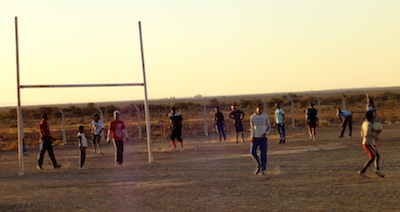 Dagen etter var jeg i Vondeling og Rietbron. I Rietbron sparket de fotball, oppildnet av fotball-VM. Sånn så det ut: