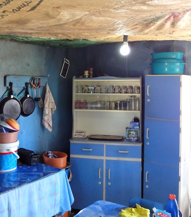 På veldig kort tid er det kommet opp 17 kommunale hus i landsbyen, knyttet til eksisterende boliger, som stort sett består av skur. Husene er små ferdighus med 2 rom, med vinduer og dør – de er vanntette, med ordentlige gulv, tak og vegger. Et av de kommunale husene skal brukes som klinikk. Ikke det at de har noen sykepleier eller lege i Vondeling, men det finnes en ambulerende helsetjeneste i regionen. Og nå kan denne helsetjenesten stoppe i Vondeling også. Og et av husene er blitt Vondeling Optel Crafts kontor, kantine og lager. Så slipper de å spise der hvor de også sitter og lager engler. Og det første elektriske lyset kom til Vondeling for et par uker siden. Kommunen har testet ut solcellepanel i en av boligene – og virker dette bra, så skal alle få. Det skjer ting i Vondeling nå. Endelig.