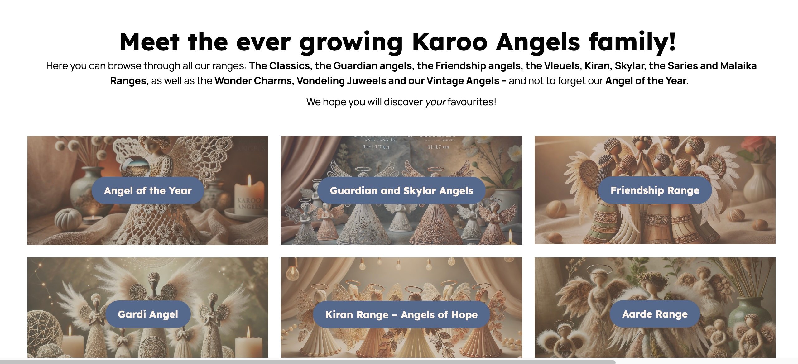 Det var på tide med oppdatering av Karoo Angels sin nettside og nettbutikk.