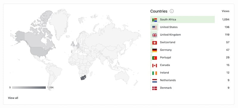 Dessuten har den haltet litt der i backend’en et års tid, og er det noe jeg er skrekkslagent nervøs for, så er det at nettbutikken ikke skal virke når julehandelen setter inn. Og særlig nå som den er åpnet for handel utenfor Sør-Afrika også. For det er mange som hilser på englefabrikken via nettet – her er de oversikt over 10-på-topp besøk per land i august. (Norge lå langt nede på lista den måneden, men er normalt inne blant 10-på-topp) Og inntektene fra netthandelen er veldig viktige, rett og slett.